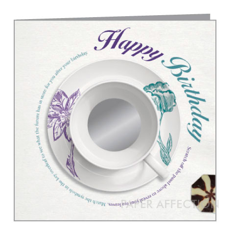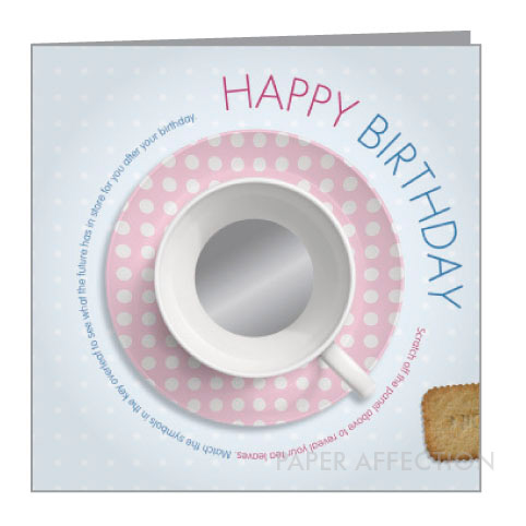 | Each of these tea cups features a scratch-off panel to reveal your tea leaves. Match the revealed  symbols to the key on the back for an indication as to what may happen in your future. |  |  |  |  |