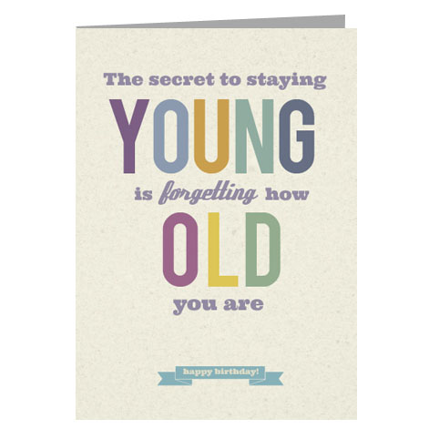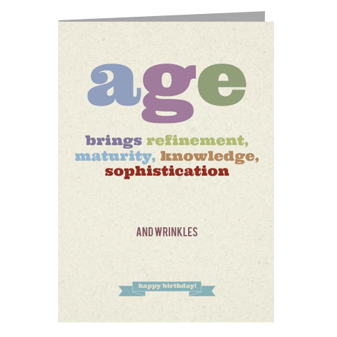 Bold birthday messages offering words of wisdom in a playful way. Blank inside.